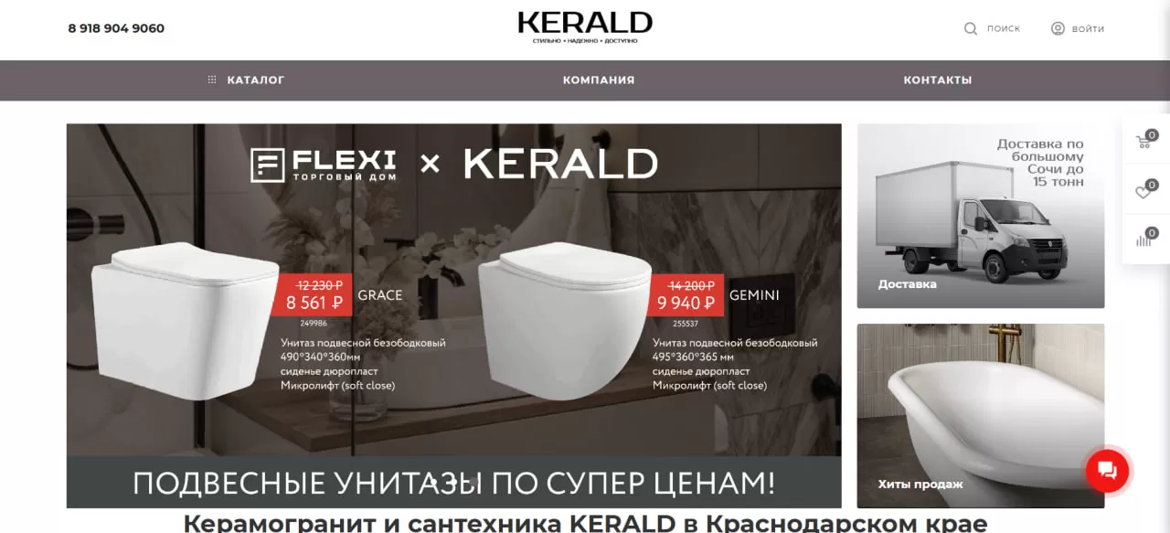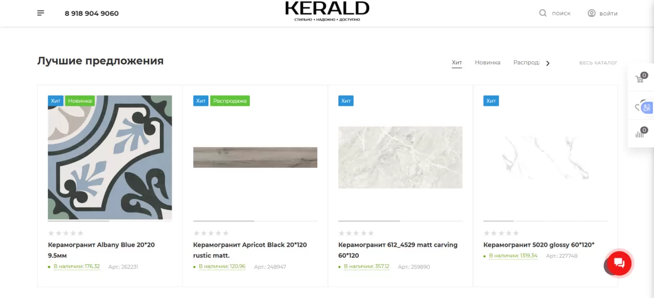 Для компании “Kerald” мы разработали сайт, ориентированный на продажу строительных материалов и оборудования. Важным аспектом при разработке было создание интуитивно понятной платформы, на которой покупатели смогут быстро и удобно оформлять заказы.