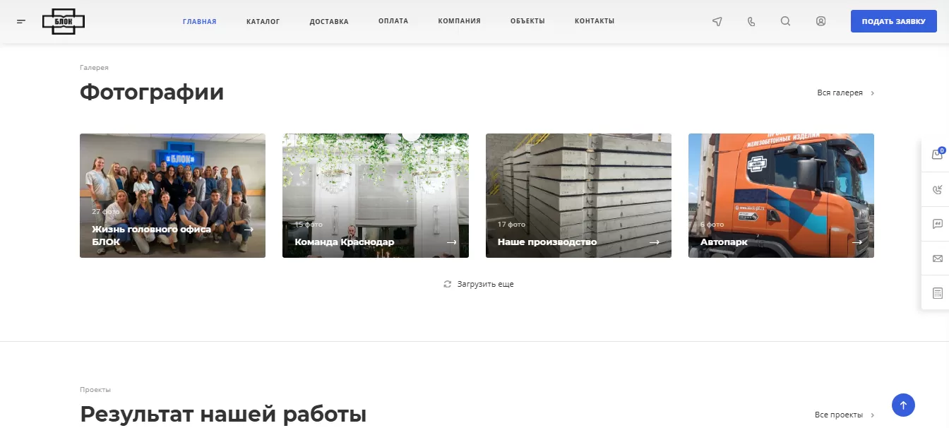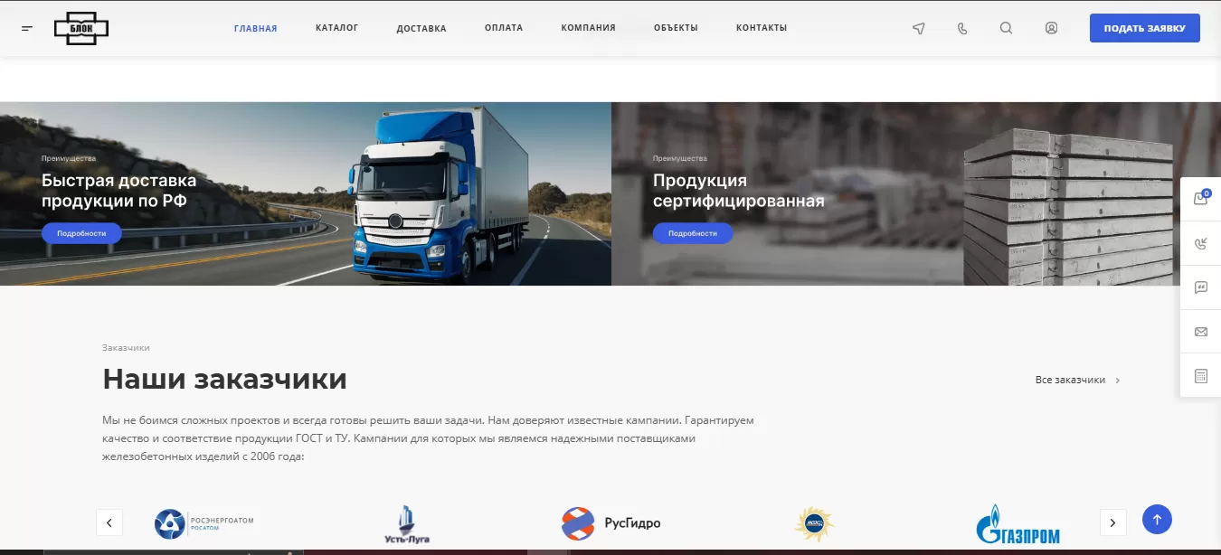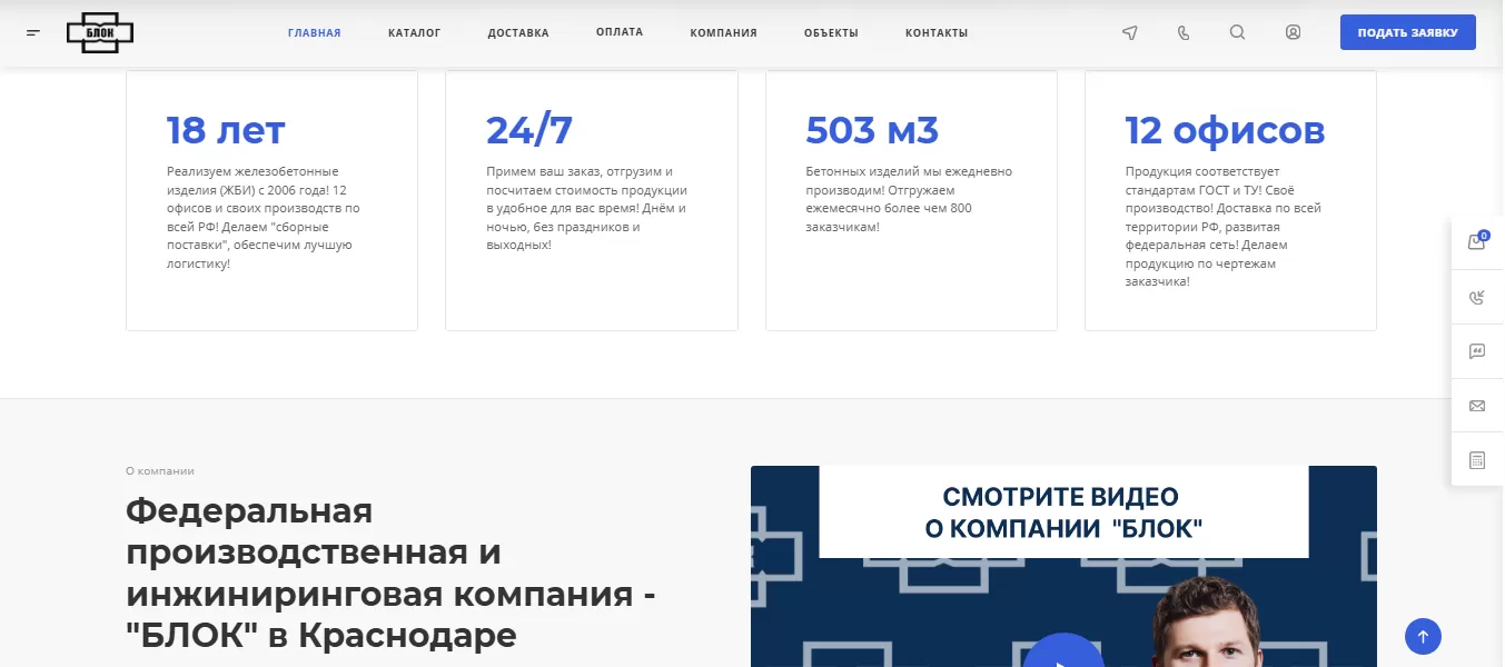 Создание и продвижение корпоративного сайта производителя железобетонных изделий «ГК БЛОК»
