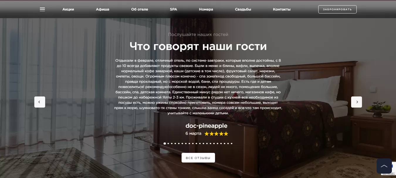 SEO-оптимизация была следующим этапом. Мы устранили технические ошибки, доработали контент под ключевые запросы, добавили подробные описания услуг с ключевыми словами, настроили метатеги и перелинковку. Вскоре сайт "Ливадийский" занял высокие места в выдаче Яндекс и Google, увеличив число бронирований.