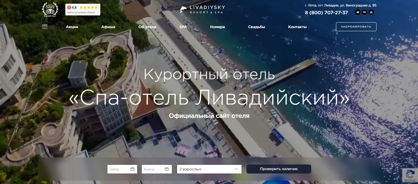 Курортный комплекс "Ливадийский" обратился к нам с заданием создать и раскрутить сайт, который должен быть удобным для гостей, ярко представлять услуги и оперативно выйти в топ поисковой выдачи.