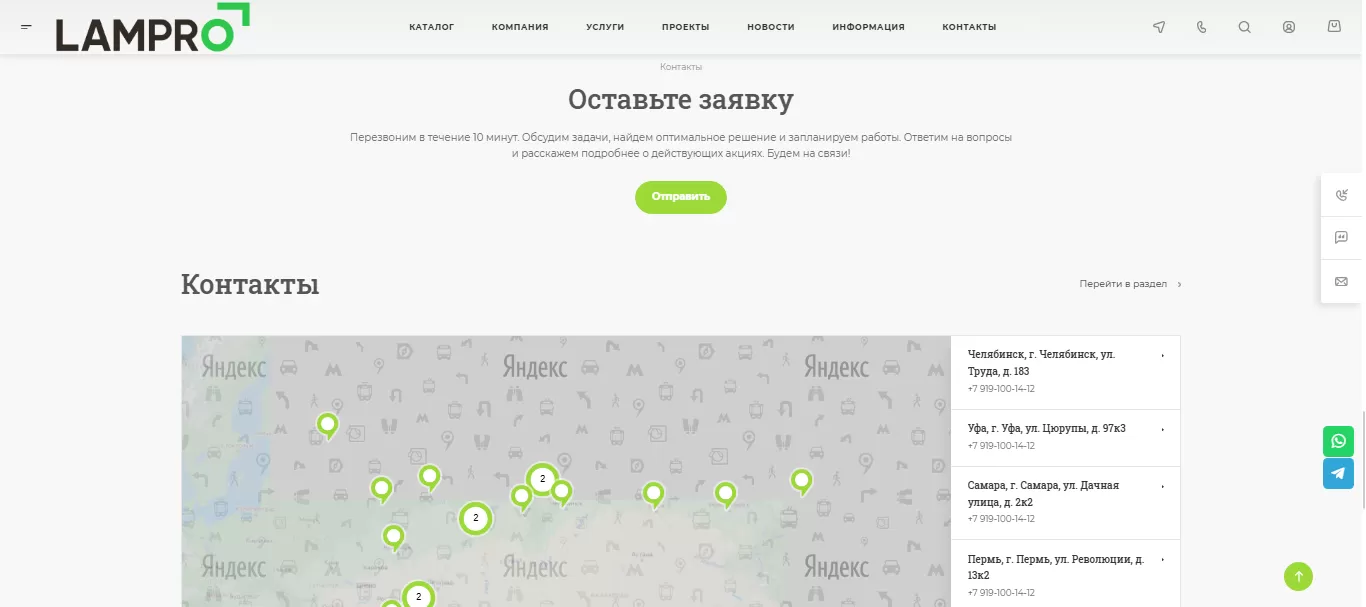 Параллельно мы запустили рекламные кампании для быстрого привлечения клиентов. Продуманные офферы и корректно настроенные объявления обеспечили высокую конверсию. В итоге Lampro получил современный и продающий сайт, который стал стабильным инструментом для привлечения новых клиентов и увеличения продаж.