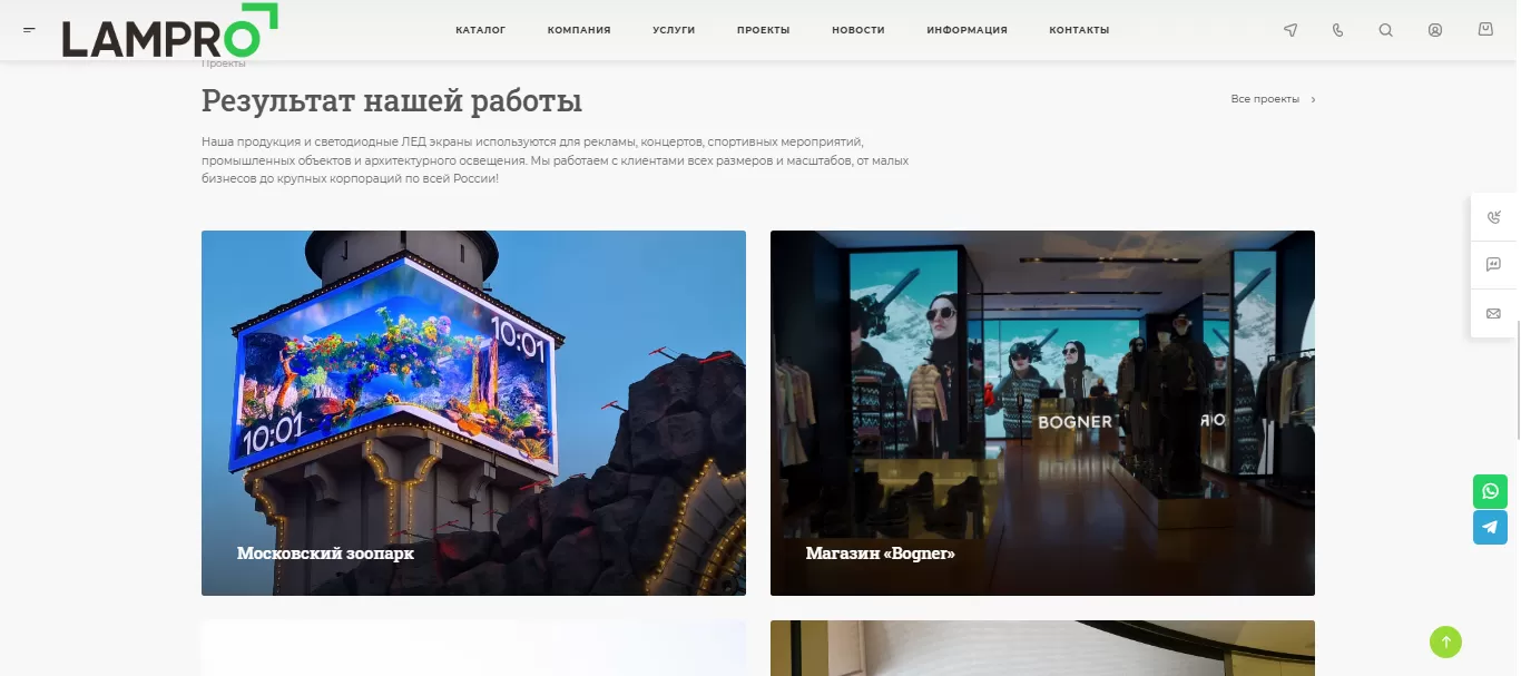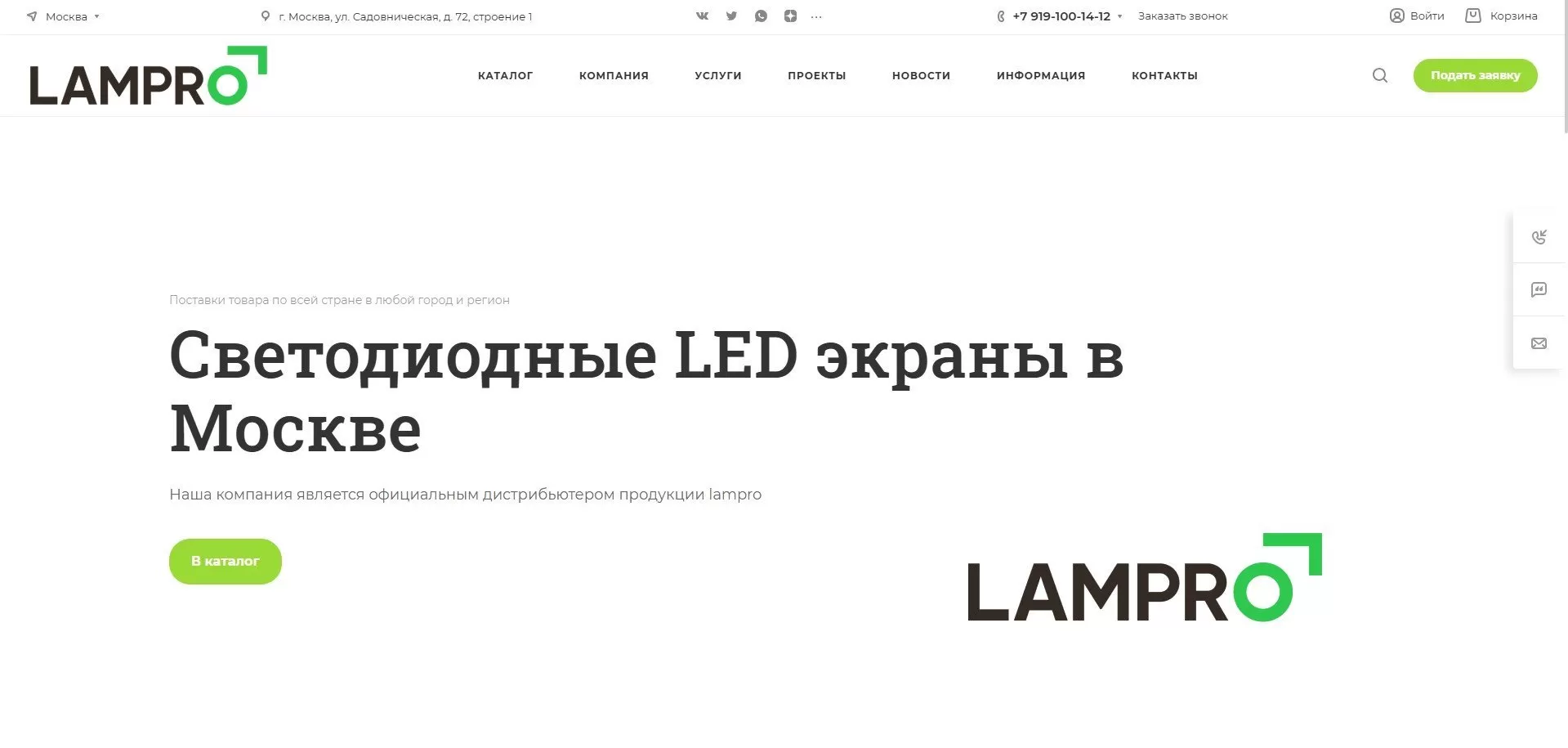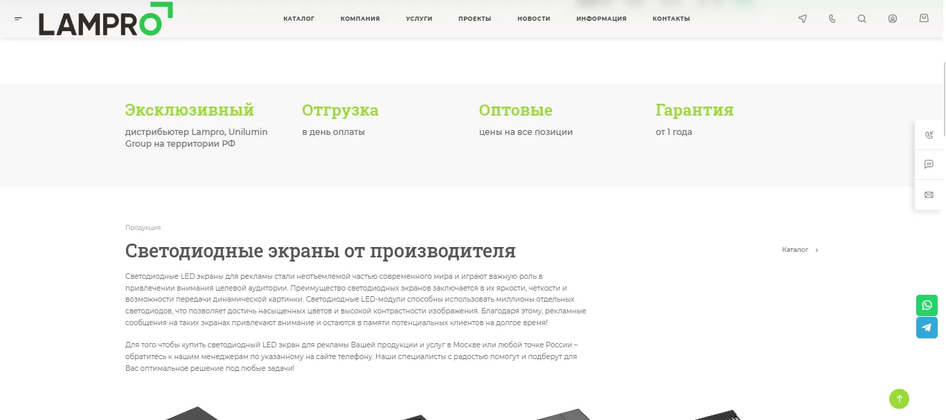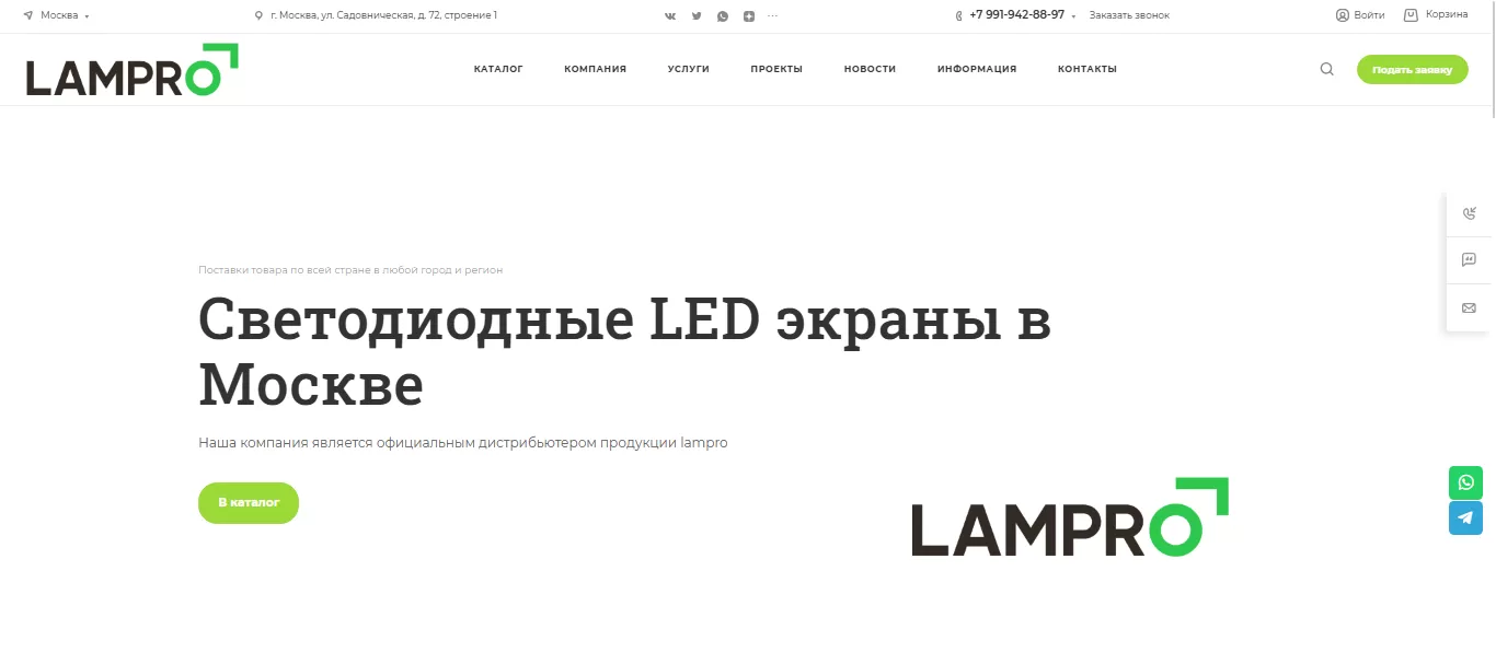 Создание и продвижение корпоративного сайта поставщика светодиодных экранов Lampro