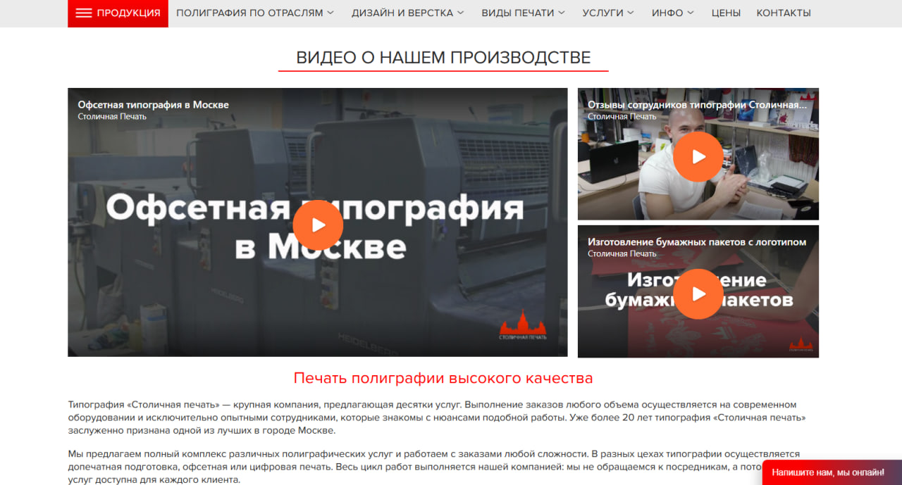 Создание корпоративного сайта для компании "Столичная печать"